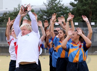 Boris Johnson z dziecmi gra w pilke