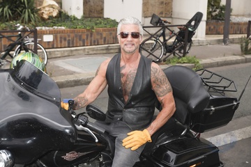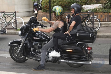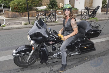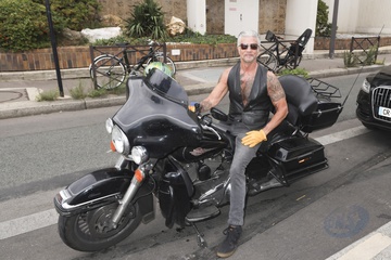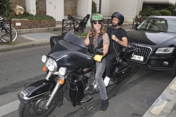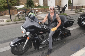 JB - Exclusif - Lorenzo Lamas de la série "Le Rebelle" est le chauffeur moto de Cyril Hanouna pour se rendre de la station de Radio Europe 1 au plateau de de l’émission "TPMP"