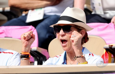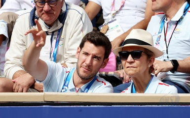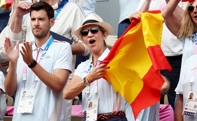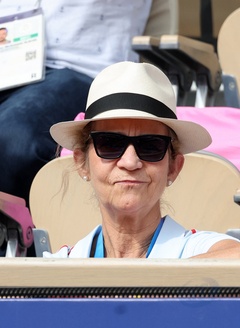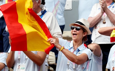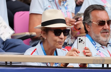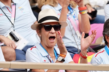 L'infante Elena d'Espagne assiste à la rencontre de tennis fauteuil entre Stéphane Houdet (FR) et Martín de la Puente (ESP) lors des jeux paralympiques Paris 2024