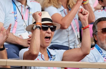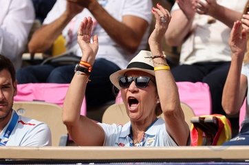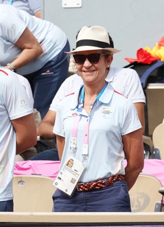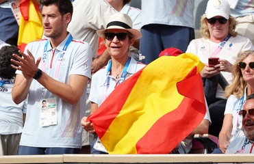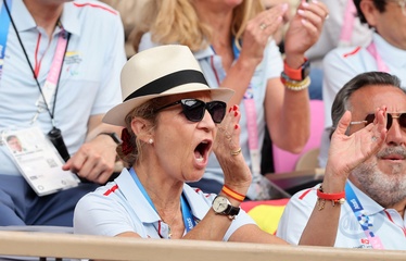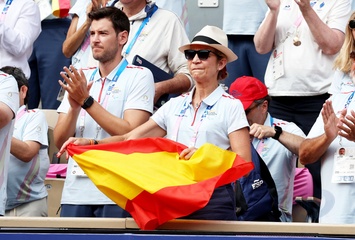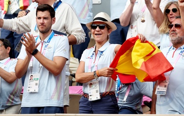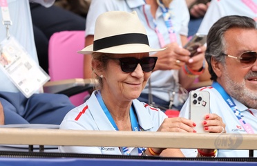 Infantka Elena z Hiszpanii uczestniczy w meczu tenisa na wózkach inwalidzkich pomiędzy Stéphane Houdet (FR) i Martín de la Puente (ESP) podczas Igrzysk Paraolimpijskich w Paryżu w 2024 r. 39