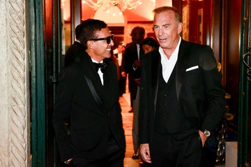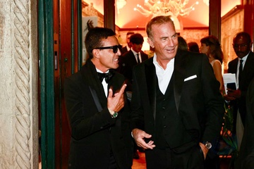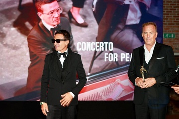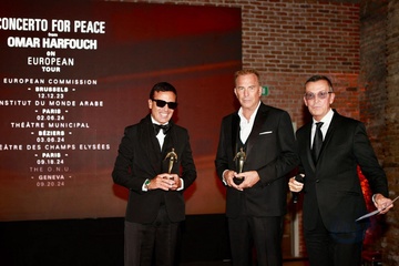 Omar Harfouch reçoit de l’acteur Kevin Costner le prix de : Best achievement for peace Award, en marge du 81ème festival international du film de Venise, la Mostra