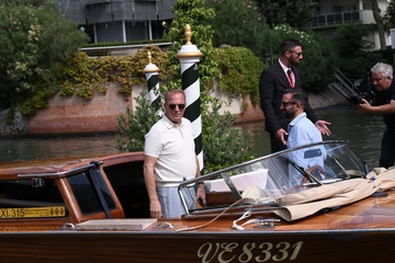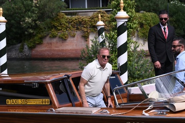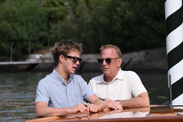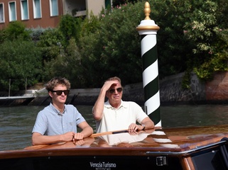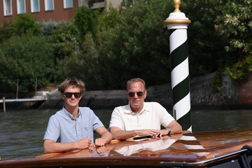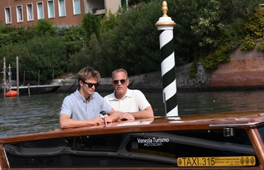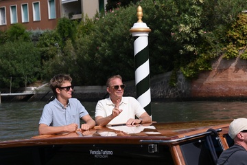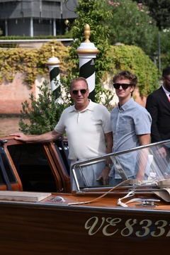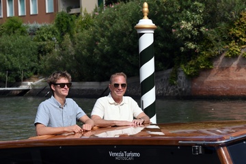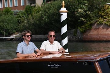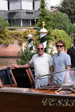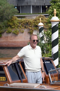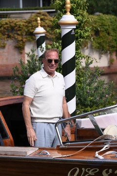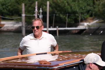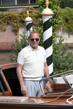 Kevin Costner przyplywa do Hotelu Excelsior Festiwal Filmowy w Wenecji.