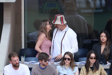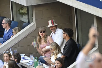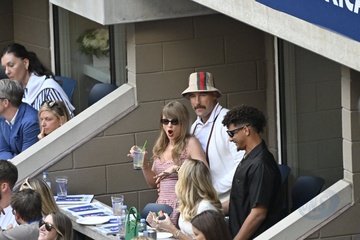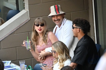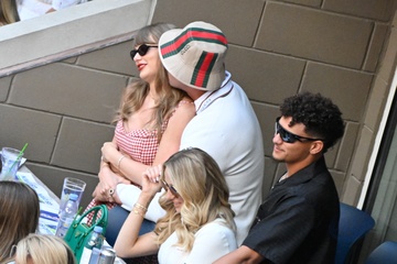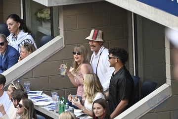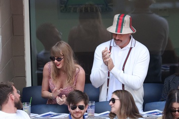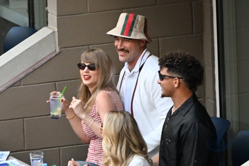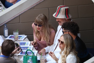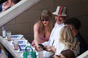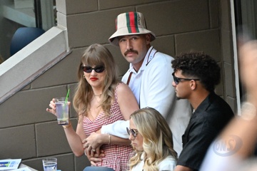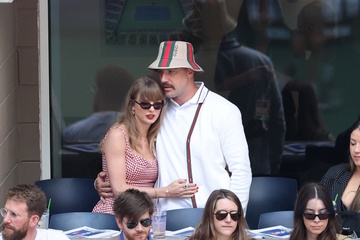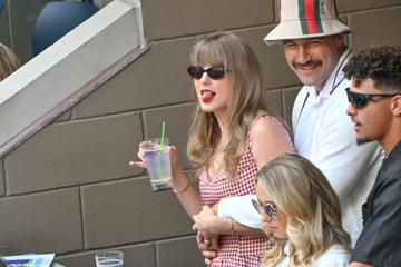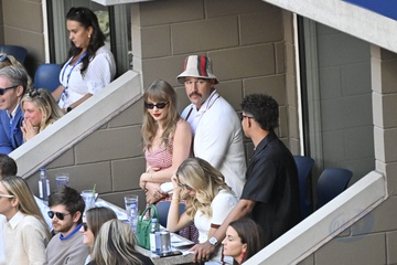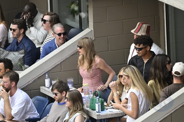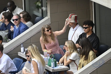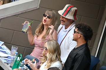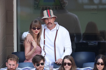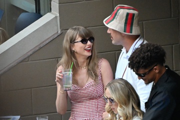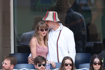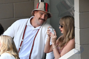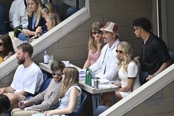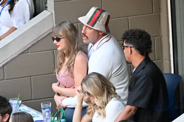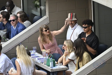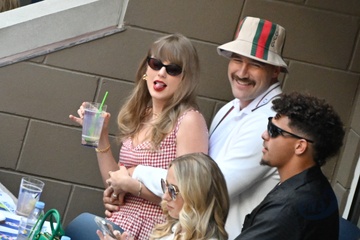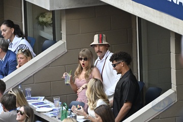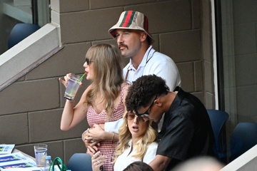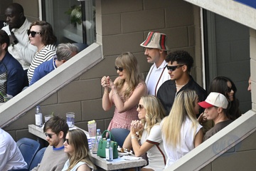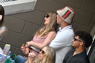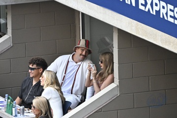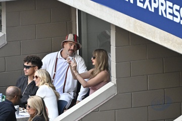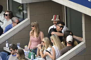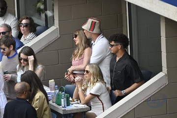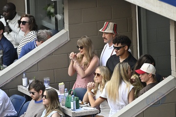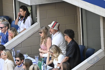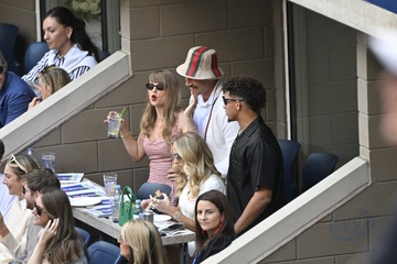 Taylor Swift et son compagnon Travis Kelce assistent à la finale de l'US Open au Arthur Ashe Stadium de l'USTA Billie Jean King National Tennis Center, Flushing Meadows le 8 septembre 2024.