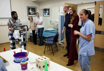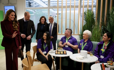 Britain's Prince William, Prince of Wales meets with parade executives after the Sovereign's Parade at the Royal Air Force (RAF) College in Cranwell, near Sleaford, eastern England, on September 12, 2024. Cadets have undergone up to 24 weeks of intensive