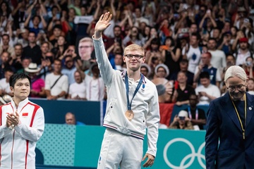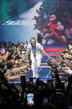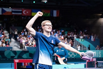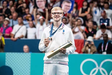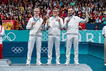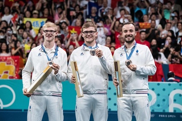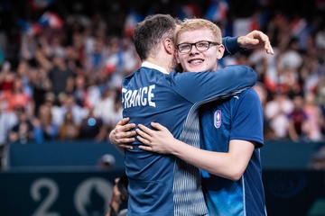 Les frères Lebrun et Simon Gauzy remportent la médaille de bronze lors de la finale de tennis de table par équipe aux Jeux Olympiques de Paris2024 (JO)