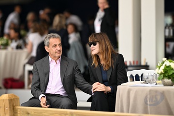 Exclusif - Nicolas Sarkozy et sa femme Carla Bruni viennent soutenir leur fille Giulia Sarkozy pendant l’épreuve Kids Cup L’Envol lors de la 10ème édition du "Longines Paris Eiffel Jumping" à la Plaine de Jeux de Bagatelle à Paris