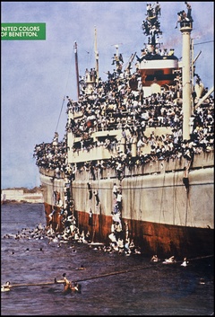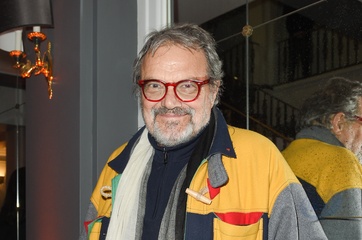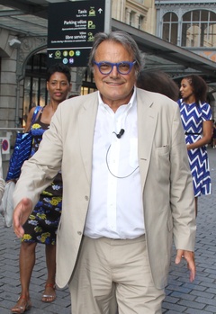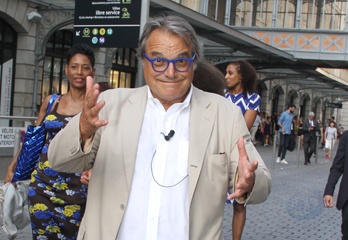 Oliviero Toscani au vernissage de son exposition "Anti-Clichés" sur le parvis de la gare Saint-Lazare à Paris