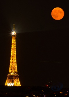 Archive - Illustration de pleine lune de 2024 (pleine lune du Loup) qui illumine le ciel de la ville lumière Paris