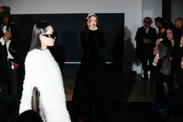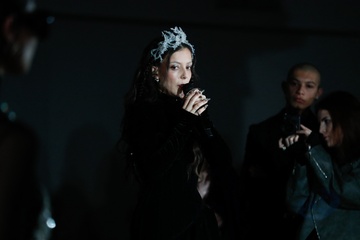 Camille Lellouche chante lors du défilé Weinsanto Mode Féminine Prêt-À-Porter Automne/Hiver 2025-20266 lors de la Fashion Week de Paris (PFW)