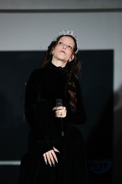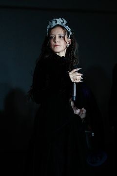 Camille Lellouche śpiewa podczas pokazu Weinsanto Women's Fashion Ready-to-Wear jesień/zima 2025-20266 podczas Tygodnia Mody w Paryżu
