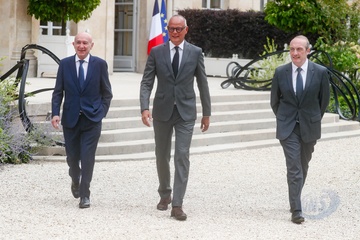 Laurent Marcangeli, Président du groupe Horizons à l'Assemblée nationale et Claude Malhuret, Président du groupe Les Indépendants – République et territoires au Sénat sont à Matignon pour un entretien avec le premier ministre