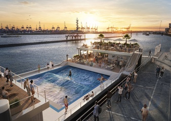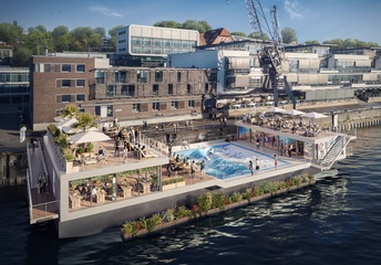 Création d'une plateforme de surf flottante unique par l'entreprise allemande Floating Wave à Hambourg