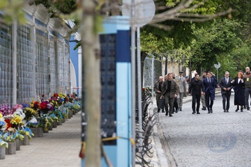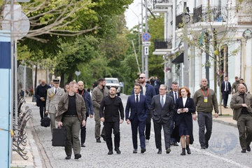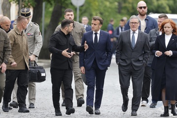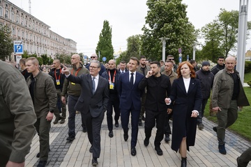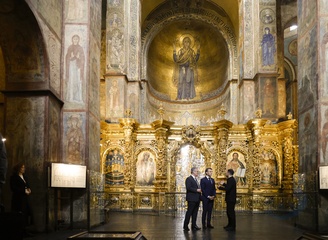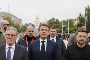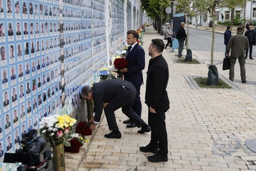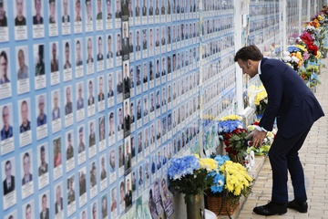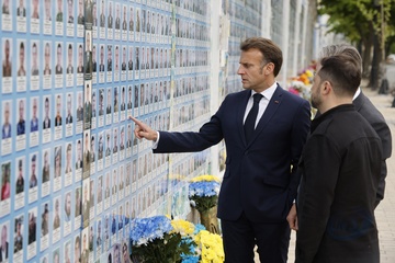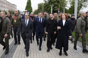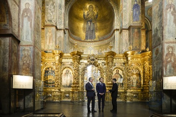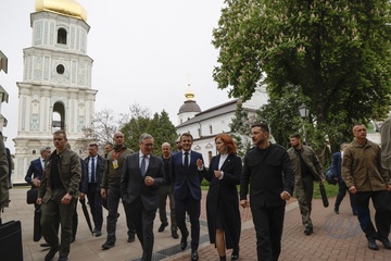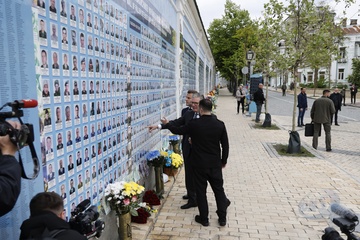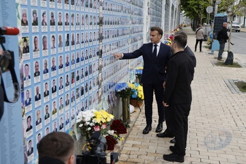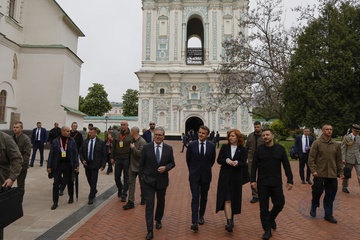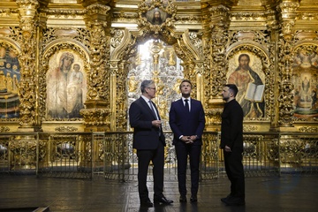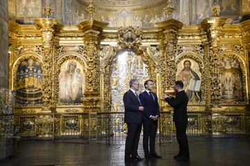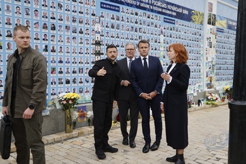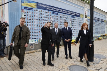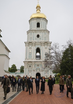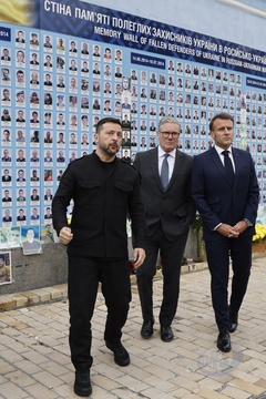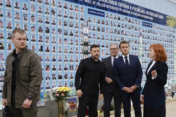 Emmanuel Macron, Keir Starmer, et Voloydmyr Zelensky visitent le Mur des Héros de la Nation et la cathédrale Sainte-Sophie à Kie