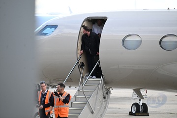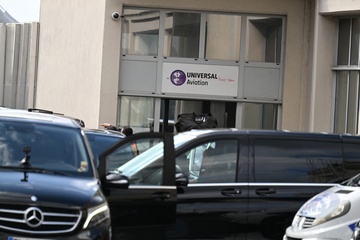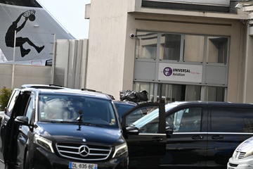 Arrivée sous très haute protection de Kim Kardashian à l'aéroport du Bourget la veille de son audition au procès de la rue tronchet des "Papys braqueurs" de Kim Kardashian à Paris