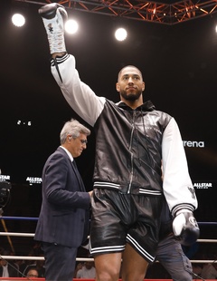Combat de boxe entre Tony Yoka et Arslan Yallyev à l'Adidas Arena à Paris