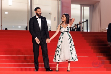 152 / 5 000 Karim Benzema i jego partnerka Lyna Khoudri przy wejściu na projekcję filmu „13 dni, 13 nocy” na 78. Międzynarodowym Festiwalu Filmowym w Cannes 68