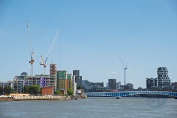 Wandsworth bridge seen from the River Thames Path between Putney and Battersea Power station, London.