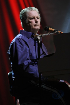 Musician Brian Wilson is shown performing on stage during a "live" concert appearance with The Beach Boys during their 50th Anniversary concert tour. 3