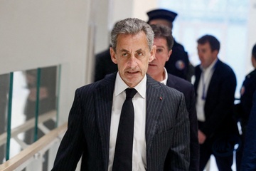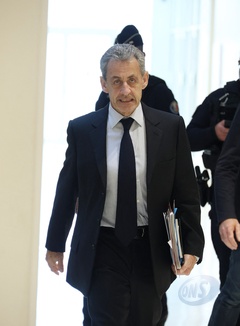 Nicolas Sarkozy arrive au tribunal pour les réquisitoires dans le cadre de son procès des soupçons de financement libyen de sa campagne éléctorale de 2007