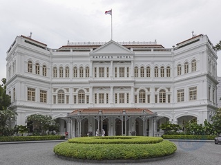 Singapore, Raffles Hotel, main entrance and front facade on Beach Road