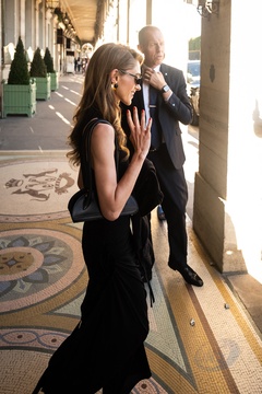 Natalia Dyer quitte l'hôtel Meurice lors de la Fashion Week de Paris (PFW)