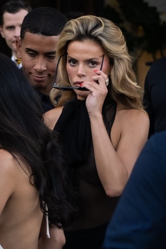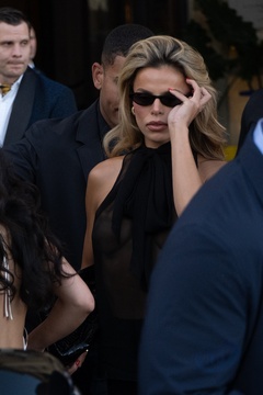 Lauren Sanchez Bezos et Brooks Nader quittent l'hôtel de Crillon lors de la Fashion Week de Paris (PFW)