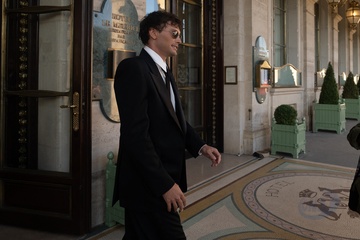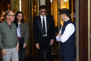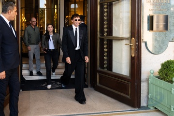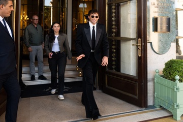 Cooper Koch quitte l'hôtel Meurice lors de la Fashion Week de Paris (PFW)