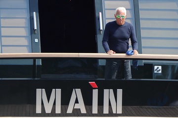 CODE: POLY FOTOTRE PORTOFINO - 07/09/2014 FASHION DESIGNER GIORGIO ARMANI ON HIS YACHT MAIN IN PORTOFINO. GIORGIO HAS LUNCH WITH HIS FRIEND PUNY