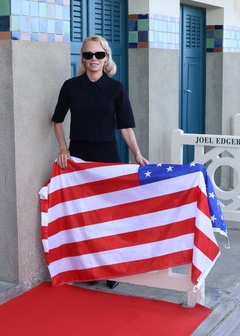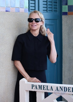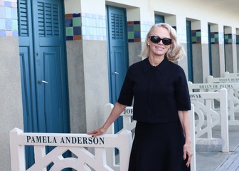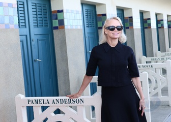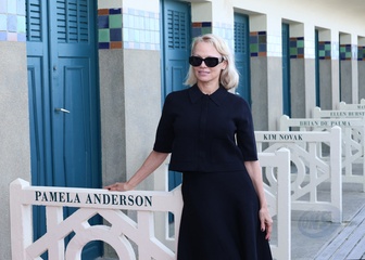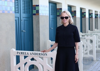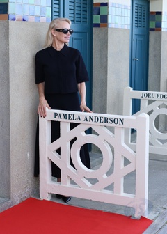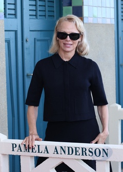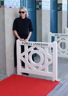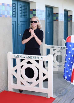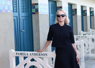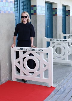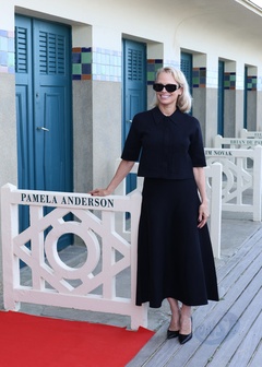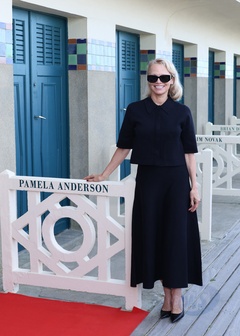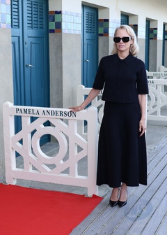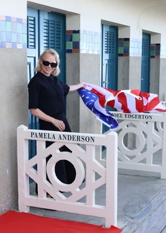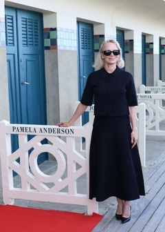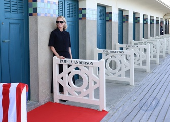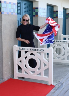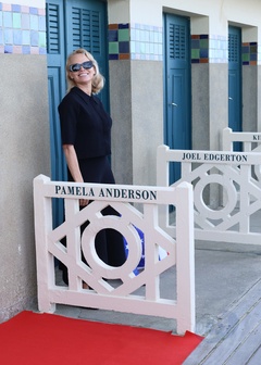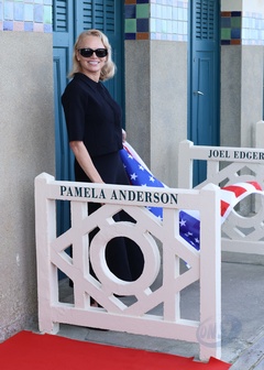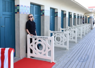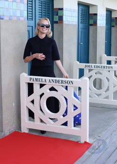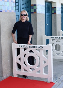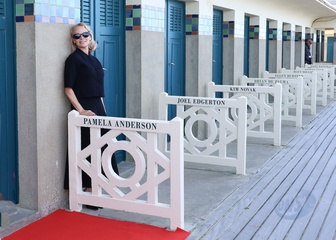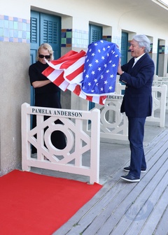 Pamela Anderson inaugure sa cabine sur les planches de Deauville lors du 51éme Festival du Cinema Américain de Deauville
