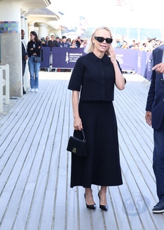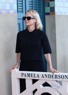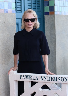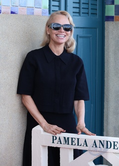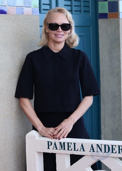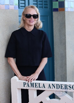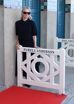 Pamela Anderson otwiera swoją kabinę na scenie w Deauville podczas 51. Deauville American Film Festival