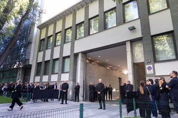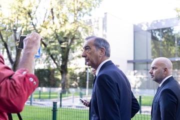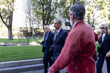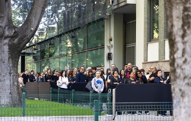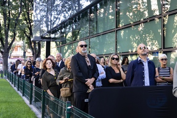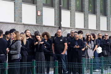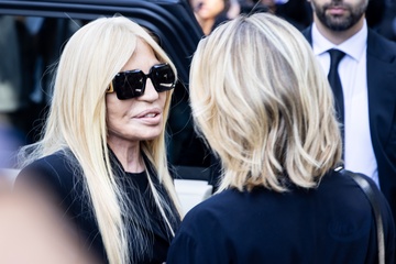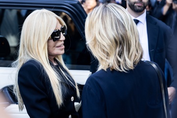 Giorgio Armani's funeral chapel, Donatella Versace arrives
