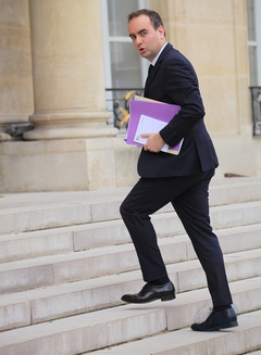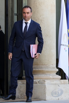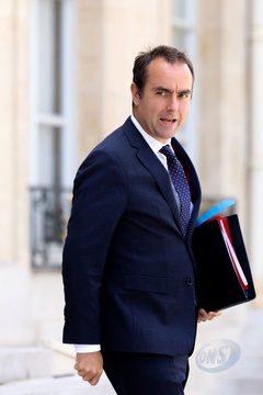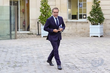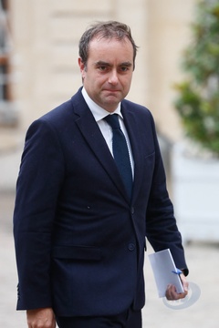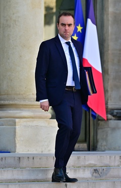 Le président de la République française Emmanuel Macron et sa femme la Première Dame Brigitte Macron à la réception offerte par le ministre des Armées, Sebastien Lecornu au ministère de la Défense l'Hotel de Brienne à Paris