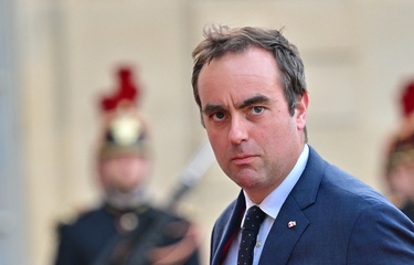Le président Emmanuel Macron prononce le discours de clôture de la conférence sur la défense aérienne et anti-missiles de l’Europe, en présence des ministres de la défense de l’Union européenne