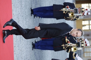 Le président de la République française Emmanuel Macron présente ses voeux aux forces armées à Cesson-Sévigné, au Commandement de l’Appui Terrestre Numérique et Cyber