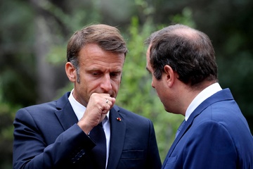 DJ - Emmanuel Macron lors de la cérémonie internationale commémorative du 80ème anniversaire du débarquement en Provence à la nécropole nationale de Boulouris