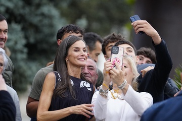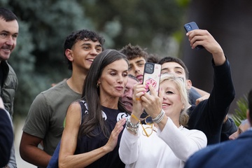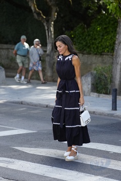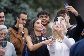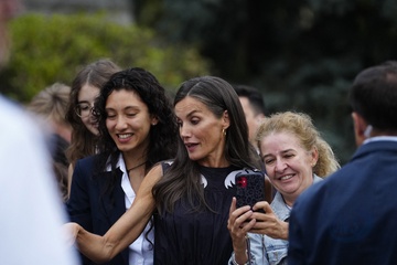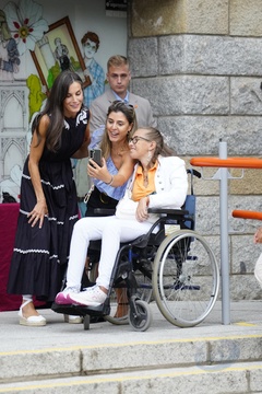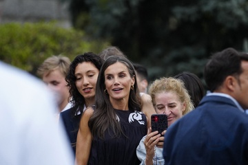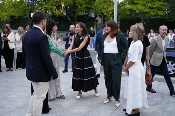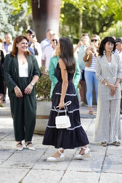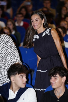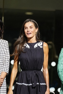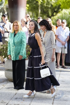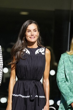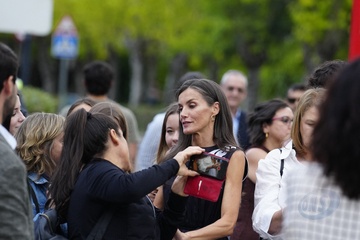 Królowa Letizia przy wyjściu z konferencji „Kobiety, sport i społeczeństwo” zorganizowanej w Casa de la Cultura „Paco de Lucía” w Torrelodones