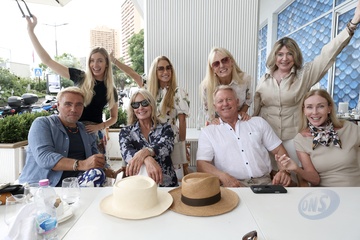 Exclusif - Bo Derek et ses amis au restaurant Cova palais de la plage à Monaco