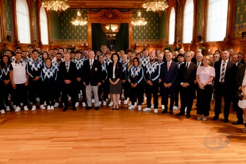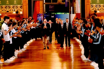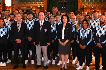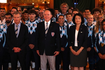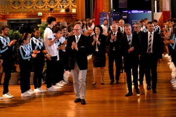 No Tabloïds - Le prince Albert II de Monaco lors de la réception des athlètes des jeux des petits états d'Europe au musée océanographique à Monaco