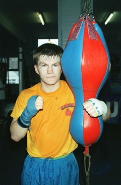 Working out in preparation for his title fight against Jon Thaxton