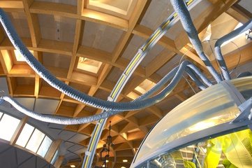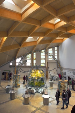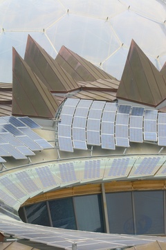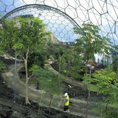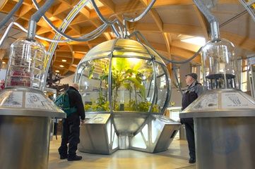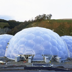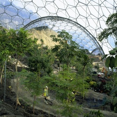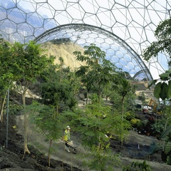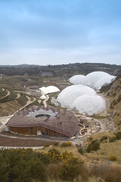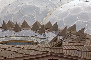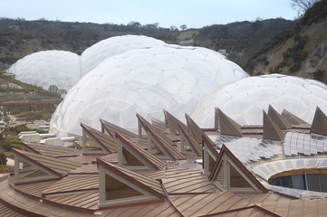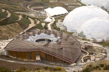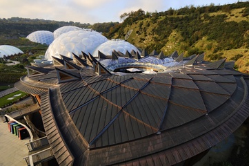 "The £15 million education centre The Core is the new addition of the Eden Project, St Austell, Cornwall, England, UK. The design is based on the fundamental rule of how plants grow, incorporating a central trunk and canopy roof that shades the ground an