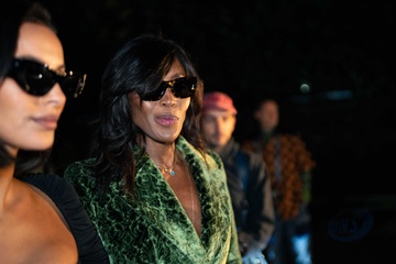 Burberry Maya Jama i Naomi Campbell uczestniczą w pokazie Burberry podczas London Fashion Week we wrześniu 2025 roku w Hyde Parku