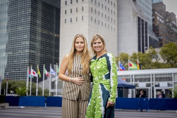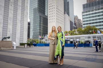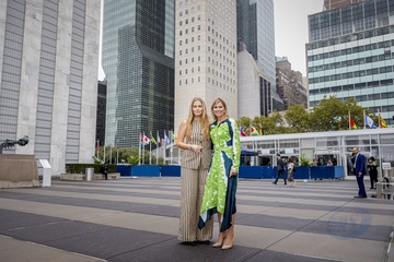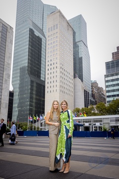Queen Máxima and Princess Amalia pose at the UN building, New York, The Netherlands