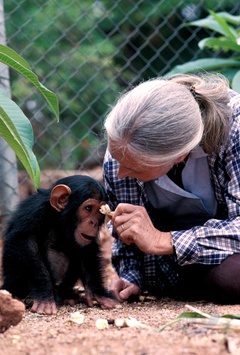 Jane Goodall Personality Jane Goodall with orphaned Chimpanzee Pan troglodytes