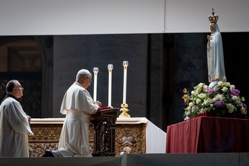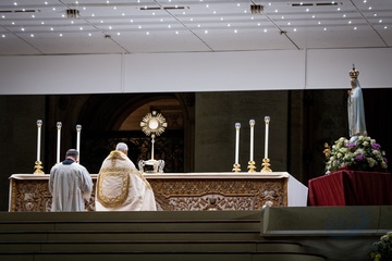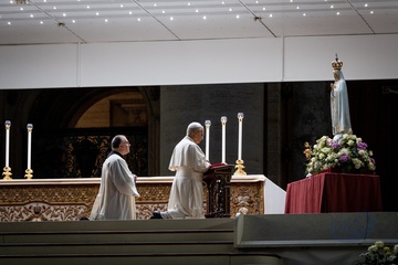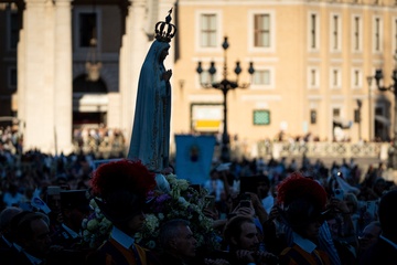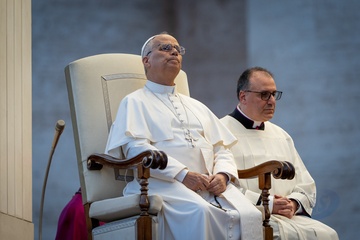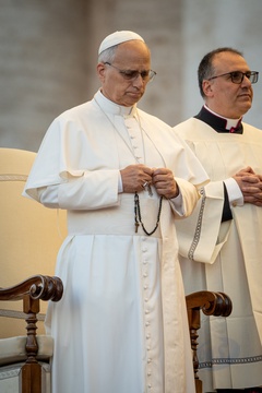 Pope Leo XIV presides over a Rosary vigil for peace in St. Peter's Square in Vatican City, Vatican, on 11 October 2025. 60