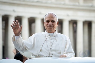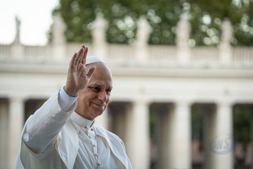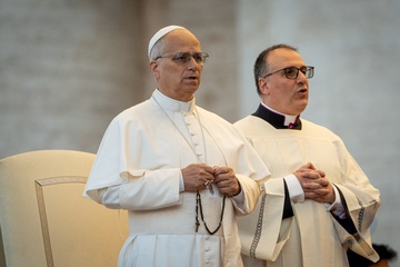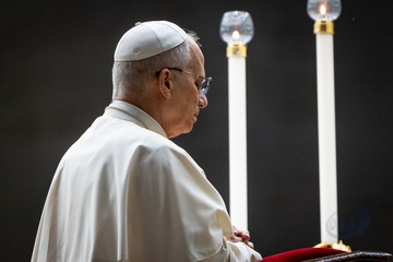 Pope Leo XIV presides over a Rosary vigil for peace in St. Peter's Square in Vatican City, Vatican, on 11 October 2025.