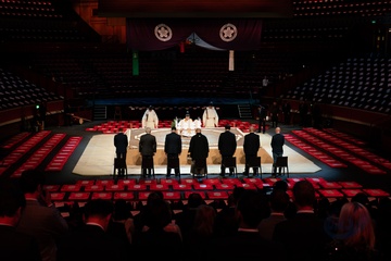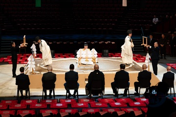 Dohyō-Matsuri (ring blessing ceremony) in the auditorium of the Royal Albert Hall ahead of the tournament commencing this evening. The Grand Sumo Tournament takes place at the Royal Albert Hall between 15–19 October 2025, marking only the second time Jap