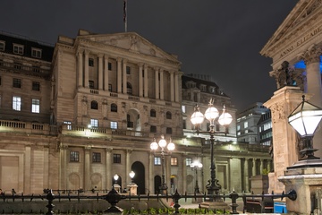 Bank of England at night in the City of London , london, UK.