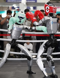 Humanoid robots fight in kickboxing competition