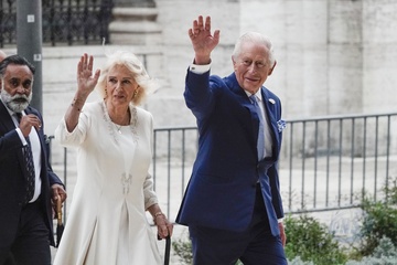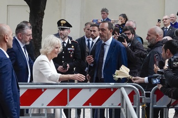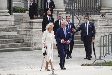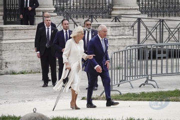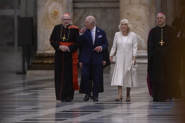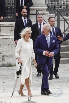 Italy, Rome, 23 October, 2025 - King Charles and Queen Camilla visiting the Basilica of Saint Paul Outside the Walls