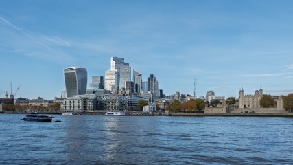 River Thames and the financial district of the City of London. London, UK.
